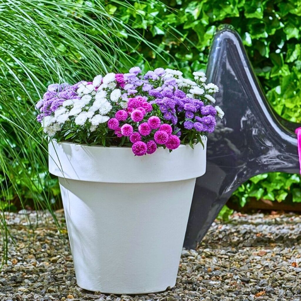 De Aster Showmaker doet haar naam eer aan: een ware publiekslieveling die tot diep in de herfst blijft bloeien. Met haar rijke kleurenpalet en volle groei brengt ze leven en vrolijkheid in elke tuin of terras. De compacte, gelijkmatige plantvorm zorgt voor een verzorgd geheel, terwijl de talloze bloemen blijven verschijnen, zelfs wanneer andere planten al aan hun rust toe zijn. Een sterke seizoensbloeier die kleur en frisheid tot het einde van de zomer waarborgt.